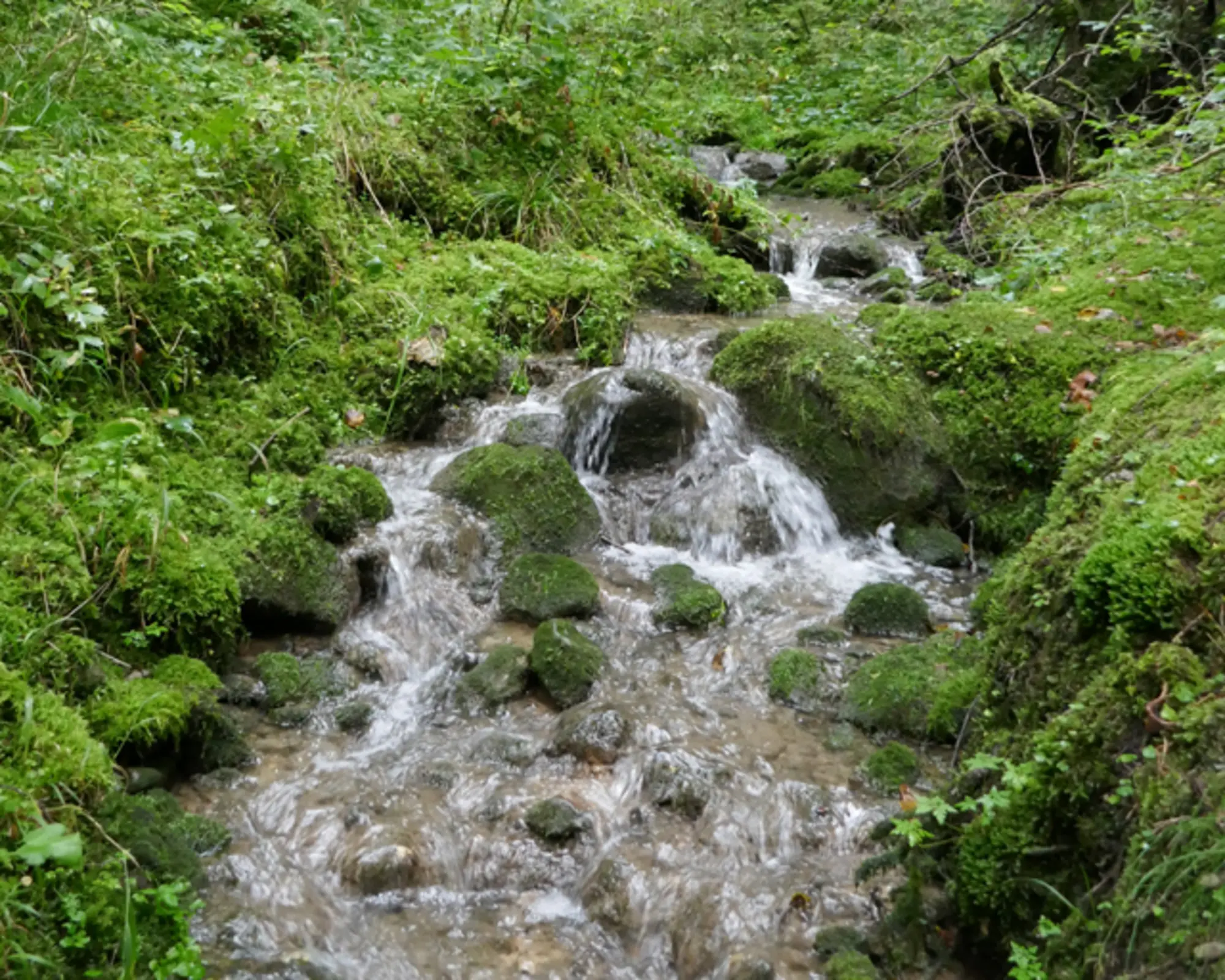 Am Mühlbach spürt man ganz besonders die saubere Luft – der „Geruch“ von Frische aktiviert die Sinne. Hier zeigt sich die Wirkung des Wassers in seiner reinsten und wilden Form. Steile Hangrutschungen und der Allgäuer Tobel prägen diesen Weg mit seiner reichhaltigen Flora. Dabei drängen sich unterwegs die intensiven Düfte von Erde, Moos und Holz in den Vordergrund. Im Sommer kitzelt der Eisenhutblättrige Hahnenfuß die Nase.