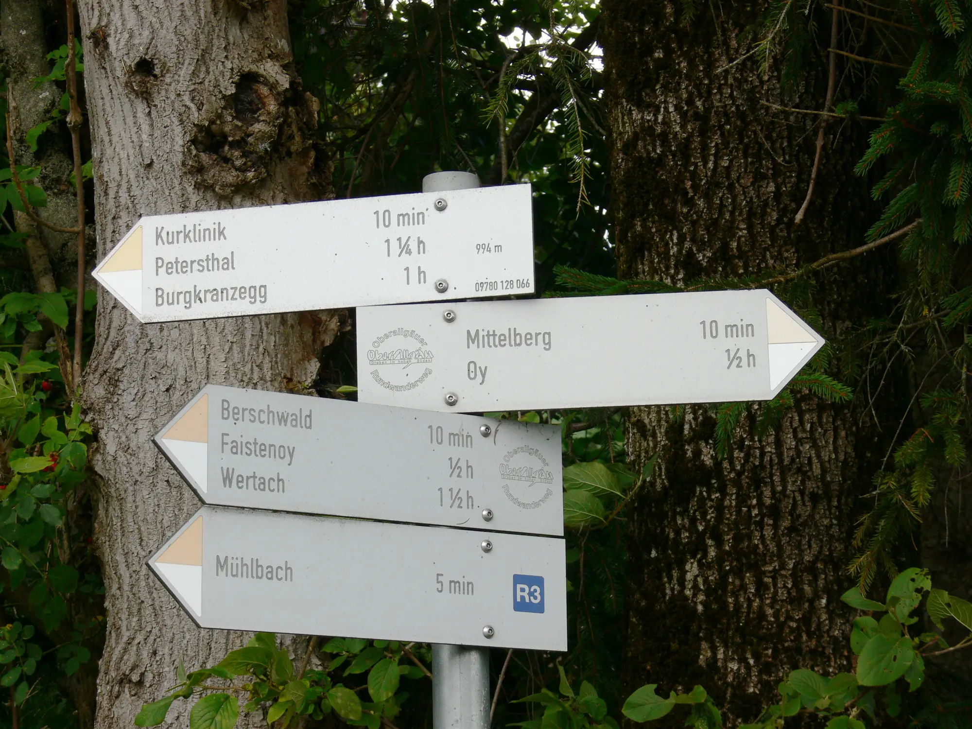 Der Weg zweigt im ersten Teil ab und führt nach Mittelberg hinauf, was für seine Panoramasicht berühmt ist. Wählt man diesen Weg so folgt man den Trilogierundweg.
