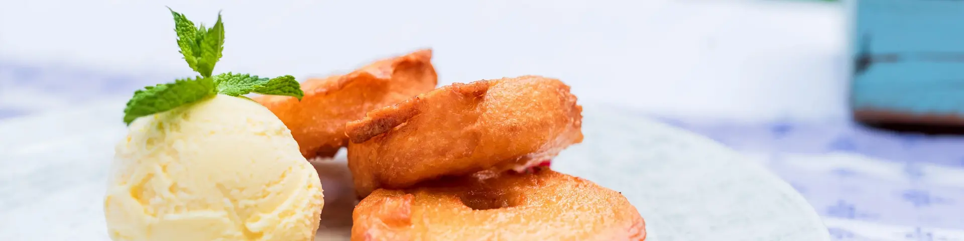 Herausnehmen und auf ein Küchenkreppabtropfen lassen mit Puderzucker bestreuen.