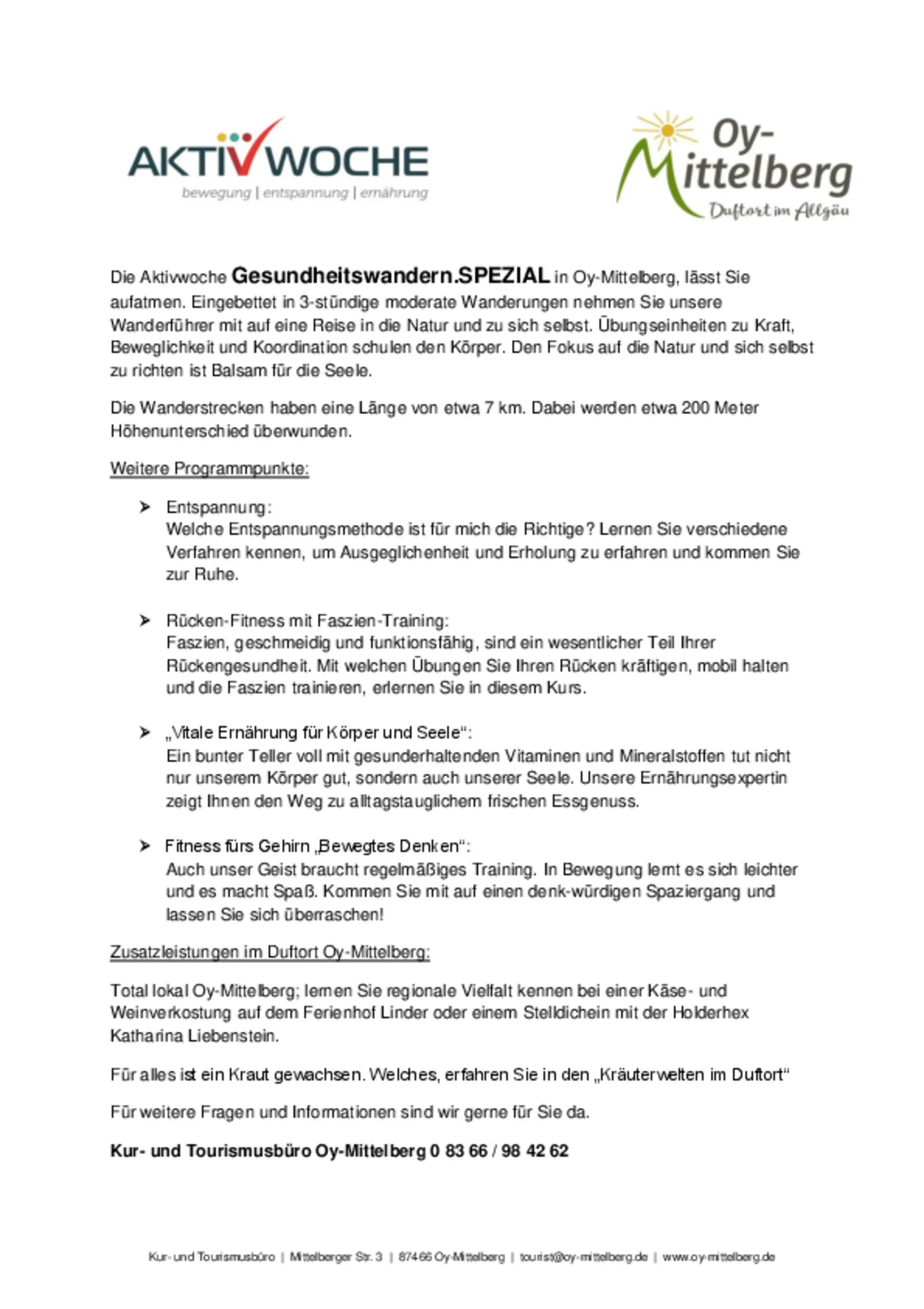 - 11.10.-17.10.2026: “Gesundheitswandern”