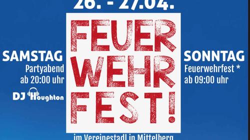 Samstag und Sonntag (26.04. / 27.04.) findet in Mittelberg, anlässlich der Beschaffung des neuen Feuerwehrfahrzeuges, die Fahrzeugweihe mit anschließendem Feuerwehrfest statt.