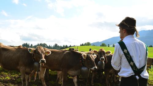 Es kommt eine Herde von der Haslacher Alpe. Bewirtung durch den Pfeifenclub Haslach.